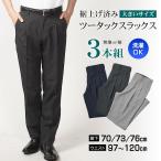 スラックス 大きいサイズ メンズ 3本組 セット 裾上げ済み ツータック ビジネス パンツ 洗える 洗濯可能 ストレッチ 春夏物 無地 柄